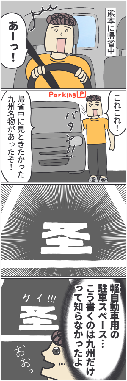 隠れた九州名物:駐車場にて 2025年09月28日 こんばんは。今日も4コマ更新にて失礼いたします!!隠れた九州名物:駐車場にて 軽自動車の駐車スペース、「軽」ではなく車へんが無いバージョン。これ、私はずっと全国どこでも当たり前なんだと思っていました。ほんの少し前にSNSでふと見かけた、これは九州だけらしいと ... 続きを読む