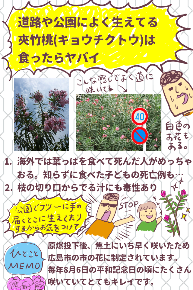 お恥ずかしながら、夾竹桃の存在も毒性のことも知りませんでした!!(◎_◎;)