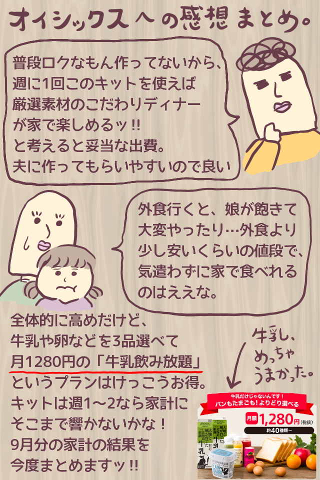 オイシックスは野菜以外のものも沢山取り扱っているけど、高いので「牛乳飲み放題」の対象商品+ミールキットでやりくり…