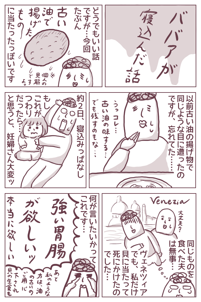 しかし、何度も何度も繰り返し使った揚げ油で揚げたものというのは、そもそも健康にもよくないでしょうし、ババアのように寝込む原因になることもあるかもね…。