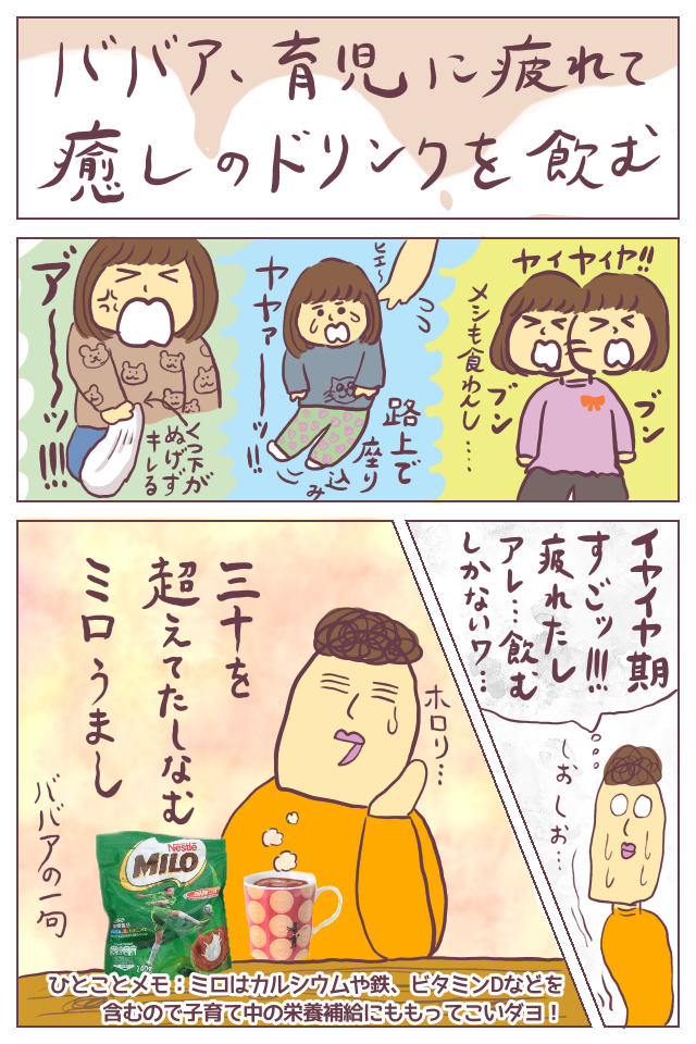 そんなミロ飲んでるババアですが、本当にイヤイヤ期…まだ言葉がそこまで通じない約2歳児との暮らしって大変なものなんですね〜。