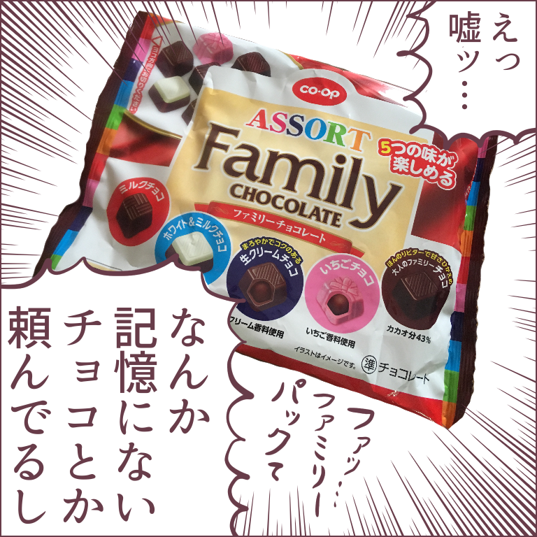 漫画に描いた生協のファミリーパックのチョコももちろん美味しくて、毎日バカみたいに食べてしまいましたッ!!(そして吹き出物ができた)