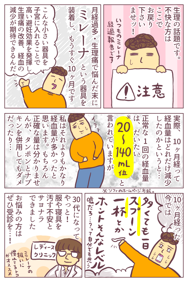 ミレーナについて、何となくは知っておりましたが、あまり細かい情報や使用者の感想が見当たらず、ここにたどり着きました。