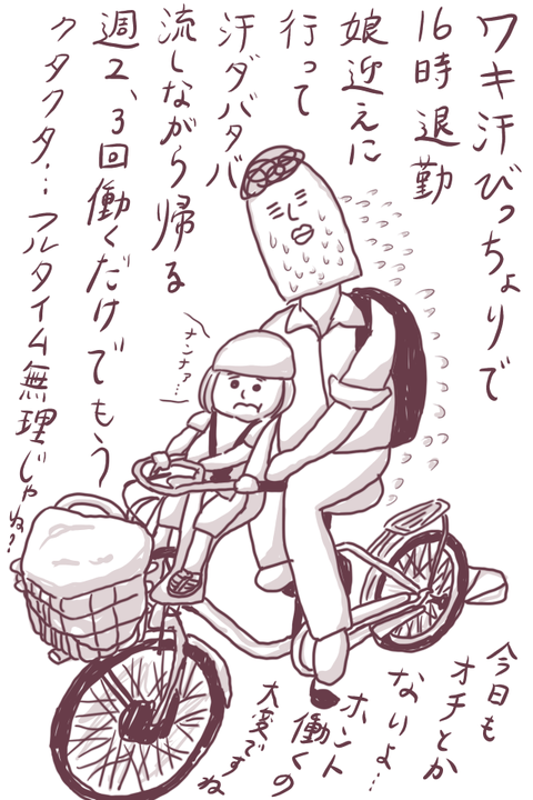 【ぼやき】働くの大変ですね…? 2018年07月18日 ただの愚痴、漫画ですらないのですが今日はこれだけッ!!!チャリはトレースしましたが、人体を描くのが下手すぎてわけのわからん絵になった。練習あるのみ……ババアの就活〜小さい子抱えた専業主婦、無理難題ばかり〜をそのうちシリーズにしたいと思っているのですが、本 ... 続きを読む