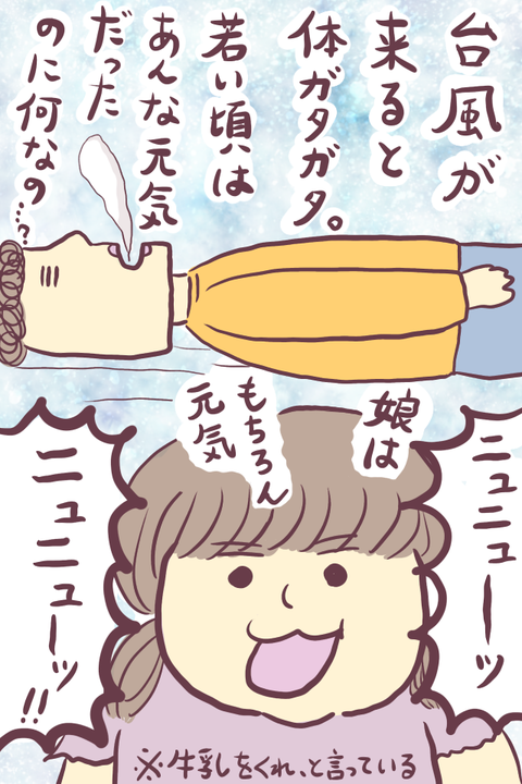 【日記】台風よ… / 鍋の話 2018年08月23日 今日はもうなんか、台風のせいなのかグッタリしていました。というだけの日記ッ!!!1枚目の構図とかどんなんなってるの?と言いたくなる画力ですがお許しくださいッ…台風のせいという事で…。娘は最近牛乳が欲しい時に「ニュニューーッ!!!」と絶叫します。今日はそんな ... 続きを読む