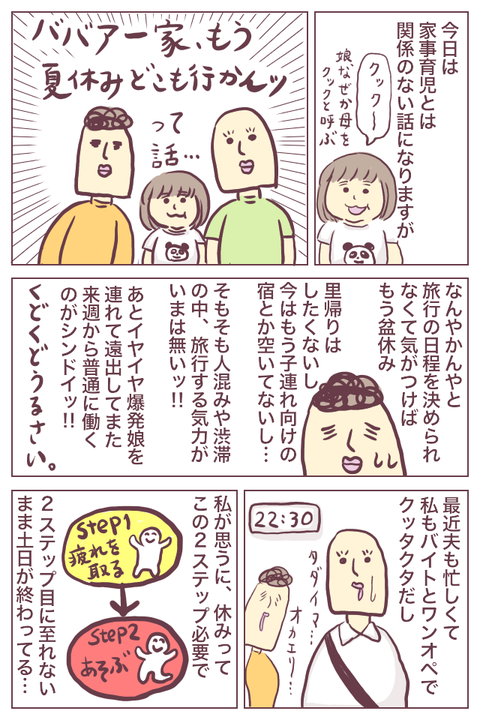 【ぼやき】夏休み短ぇ〜〜〜 2018年08月14日 子どもの頃よく聴いた夏休みは〜やっぱり〜短い〜なんて曲。子どもの夏休みは1ヶ月以上あったのに、それでも短いなんて思っていたっけ。そして今、XX歳になった夏休み。みっっじけぇ〜〜〜!!!というただの愚痴です。はい、ただの愚痴でした……。有休消化率のデータはこち ... 続きを読む