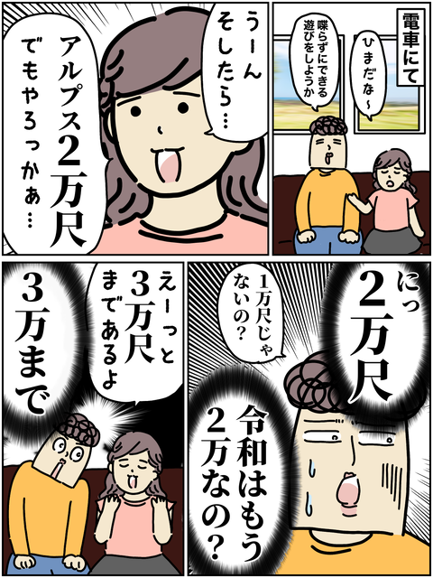 5歳娘の遊びのトレンドに衝撃 2022年10月05日 こんばんは。5歳娘のトレンドとは。2万尺って何3万尺って何…と衝撃を受けた話。そもそもの地域差なのか娘の周囲でのみ発生しているトレンドなのか。謎ですが、とりあえず微妙に違う振り付け(?)だったっぽいですね。(調べてみたらアルプス一万尺には29番まであるらしい(ち ... 続きを読む