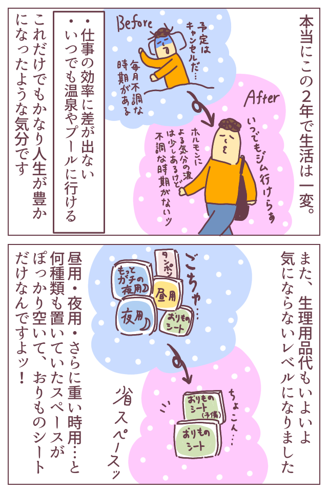 毎年数千円ずつ検査にかかっていくわけですが、浮いた生理用品代+サニタリーショーツ代などなどを考えれば全然問題ナシ!!!