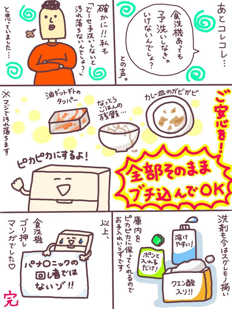 漫画には書ききれませんでしたが、食洗機を買ってよかった点が他にもありまして・・・