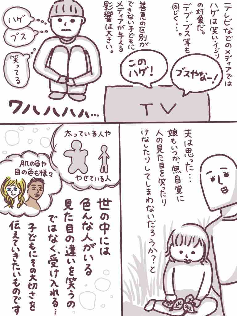 日本のバラエティやお笑いの風潮として「他者の外見をイジって笑いをとる」というのがありますが、それが子どもにとっていいものなのだろうか?と疑問を抱いたようです。