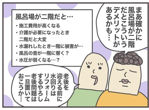 家建てる話(3)お風呂が2F? 2021年05月03日 こんばんは。突如始まった家建てるシリーズ。記事一覧はこちらから▼ 前回の話はこちらから今回はこんなお話です。家建てる話(3)お風呂が2F?「あんま見たことないな〜」そう…あんま見たことない、お風呂が2F!?って。私も、実家のお風呂は1Fにありましたし、今回も普通に1 ... 続きを読む